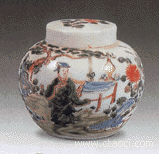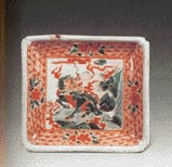 圖1 清五彩麒麟呈祥方碟 圖2 清粉彩庭院書生蓋罐