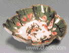 粉彩盤:有圓盤及荷頁盤兩類,紋飾以花鳥為主,云龍、人物次之,彩繪多施于盤內(nèi)中心。一些花鳥盤,花卉的布局,蜂蝶的綴飾,鳥兒的棲與飛,呈現(xiàn)動與靜的完美結(jié)合,構(gòu)成一幅協(xié)調(diào)完整的畫面。如搖曳多姿的迎春花卉中,蝶戀花,蜂采蜜,枝頭鳥兒鳴。尤其那鵲梅迎春的畫面,呈現(xiàn)出一派滿園春色的景象。圖案顯得既清新典雅又鮮艷俊秀(圖3)。云龍盤,盤心彩繪翻江倒海的四爪龍。在那烈焰升騰中龍身三現(xiàn),張牙舞爪,蜿蜒起伏于云浪間。那雄渾矯健、叱咤風(fēng)云的磅礴氣勢,或許比官窯器的彩龍顯得更生動敏捷(圖4)。荷頁盤,盤作葉片狀,盤心株蓮怒放,立于蓮池中央,茂盛的花頁,本固枝榮(圖5)。