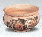 德化窯粉彩瓷最突出的特點是改變了五彩那種生硬的色調(diào),而以柔和的色彩渲染,且接色均勻平整,色相過渡自然,層次清晰,色彩豐富。尤其彩質(zhì)在顏色中摻入粉質(zhì),并在彩爐內(nèi)以700~800℃的氧化氣燒成,顯得質(zhì)感較柔軟,成品俊雅清秀。其施彩方法,既有油染,也有水染,一般小件普通品則采用色筆和水筆相互交替洗染。凡采用油染色者,則先用乳香油在“玻璃白”上涂一遍,令其飽吸油層,而后用洗染筆蘸色料敷于畫面,再用洗染筆蘸油,由深至淡逐漸洗染,分出明暗轉(zhuǎn)折關(guān)系。而水染色,則用羊羔筆先蘸水,而后以筆尖蘸色,在“玻璃白”上點染,再用畫筆“打料”飽滿后進(jìn)行描繪。比之平涂法更顯得自由活潑,意趣盎然。器物施彩的具體步驟是:在高溫?zé)傻乃卮缮,先描繪紋樣輪廓,而后在其內(nèi)填上一層“玻璃白”,并以所需色料施繪于“玻璃白”之上,再用洗染筆將顏色依深淺濃淡的不同需要洗開,最后經(jīng)“彩爐”低溫焙燒而成。所彩繪的紋飾及每一種顏色都有豐富的層次,顯得典雅柔媚。