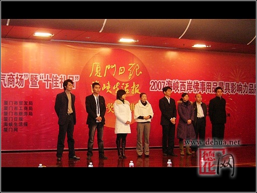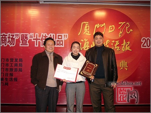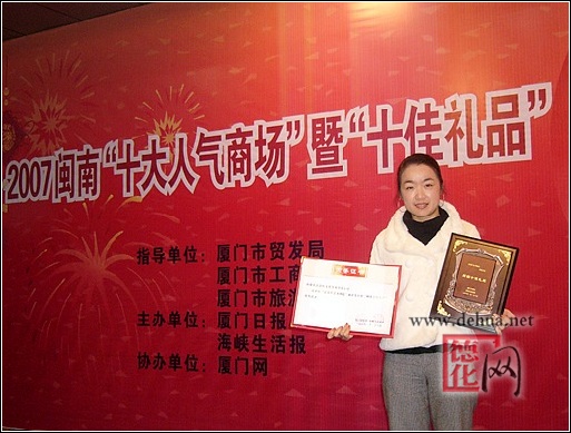 1月28日下午,廈門日?qǐng)?bào)、海峽生活報(bào)聯(lián)合在報(bào)業(yè)大廈多功能廳舉行頒獎(jiǎng)盛典。2007“閩南十大人氣商場(chǎng)”、“閩南十佳禮品”分別揭榜。品牌茶葉、漆線雕、藝術(shù)陶瓷、高粱酒等“十佳禮品”還在頒獎(jiǎng)現(xiàn)場(chǎng)紛紛亮相。