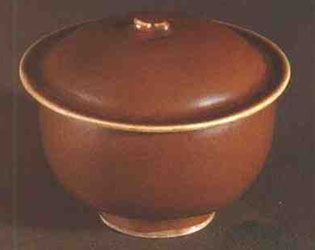 釉色為醬色、褐紅色、赭色、柿紅色的瓷器的通稱。醬釉瓷器是在青瓷基礎(chǔ)上出現(xiàn)的,它的呈色是釉料中含有較多的氧化亞鐵決定的。當(dāng)釉料含氧化亞鐵達(dá)到5%左右時(shí),釉呈米黃色;氧化亞鐵為8%左右,為赤褐色、暗褐色;如果燒成溫度比燒黑瓷高30~50度,釉色就成為醬褐色、芝麻醬色,而且穩(wěn)定精美。醬釉瓷和黑瓷工藝原理基本一樣,只是要求有較高的溫度。古代燒瓷由于窯爐結(jié)構(gòu)和燒窯技術(shù)的限制。提高溫度不容易,所以醬釉瓷出現(xiàn)比青瓷、白瓷、黑瓷略晚。醬釉瓷在唐代或唐代以前偶然燒成,但質(zhì)地較粗,尚未成為一個(gè)經(jīng)常生產(chǎn)的品種,估計(jì)可能是生產(chǎn)黑瓷時(shí),部分器物因在窯里所處位置的溫度較高而出現(xiàn),到宋代醬釉瓷燒制成功,其中定窯、耀州窯、建窯、吉州窯產(chǎn)量增加,質(zhì)量穩(wěn)定,尤其是定窯的醬釉瓷,白色的胎體,精細(xì)的制作工藝,像熟透的紅柿子般的釉色,在宋代藝術(shù)瓷中獨(dú)具風(fēng)采。宋代醬釉瓷器物有碗、盤、碟、瓶等,器形不大,品種和數(shù)量都比較少。明代景德鎮(zhèn)御窯廠以及清代的官窯都生產(chǎn)醬釉瓷,古樸渾厚,典雅優(yōu)美。宋元以來(lái),民間使用的粗瓷從碗、盤到缸、甕都有醬釉瓷器種。(見(jiàn)下圖)
