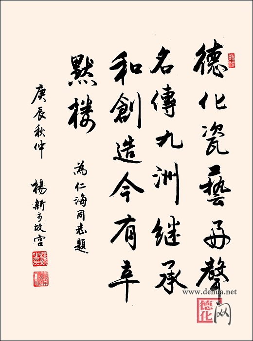一位由黨和人民培育起來的藝術大師,為搶救、保護德化中國白文化遺產(chǎn)的無私奉獻精神和創(chuàng)新精神,他的作品表現(xiàn)的是對現(xiàn)代生活的理解和對傳統(tǒng)藝術的自信,盡力以現(xiàn)代生活內(nèi)容豐富“中國白”瓷雕藝術的內(nèi)涵,使瓷雕意蘊多元化。如果說,一個藝術大師有一、兩個新的創(chuàng)意就已經(jīng)難能可貴,但如果能有一系列新的創(chuàng)意,就更加難得。如果沒有深厚的文化底蘊、精神境界和引領行業(yè)發(fā)展的思想力,就談不上創(chuàng)意的創(chuàng)新?v觀陳仁海的瓷雕人生,在創(chuàng)意創(chuàng)新方面,他不但做到了,而且做得讓人拍案叫絕。