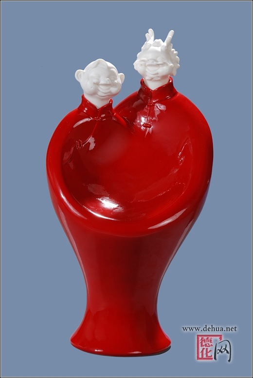 最值得稱道的是陳仁海大師開創(chuàng)性的將生肖文化融入和諧文化之中,創(chuàng)造了“中國白”、“中國紅”“和諧一家”生肖個性化全家福系列收藏瓷雕。他將生肖這一炎黃子孫的生命守護神,從精神層面物化成可看可摸的物質(zhì)形態(tài),從中國傳統(tǒng)的石刻造像,民間剪紙與當代動漫等造型藝術中,捕捉生肖造型的神韻,提煉成一種充滿藝術魅力的“中國白”十二生肖肖像圖式,將十二生肖肖像與精心設計制作的“中國紅”瓷身完美結合,并對收藏者的生肖進行個性化制作,從而形成“唯一”的只屬于自己的特殊紀念瓷雕。“和諧一家”系列生肖紀念瓷,有寓意夫妻恩愛的新婚、銀婚、金婚結婚紀念瓷“和和美美”;有寓意家庭幸福美滿的“圓圓滿滿”;有寓意夫妻相親相愛的“白頭偕老”等等。陳仁海大師的“和諧一家”生肖紀念瓷,其創(chuàng)意的思想力深刻、智慧、親和,對和諧社會建設起到了積極的推動作用。作品一經(jīng)出爐,預定者駱繹不絕,成為人們饋贈和收藏的時尚禮品。