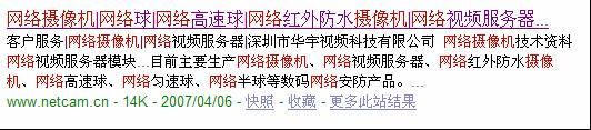 從營銷的角度我們還得考慮區(qū)域性質(zhì),比如安防行業(yè)發(fā)集發(fā)地為深圳,那么搜索深圳網(wǎng)絡(luò)攝像機(jī)將成為一大熱點(diǎn),所以我們的關(guān)鍵一定要有根據(jù)性的來作出判斷,再看筆者所優(yōu)化的深圳網(wǎng)絡(luò)攝像機(jī)一詞表現(xiàn)如何。