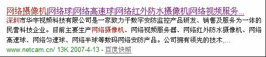 GOOGLE排名首頁第二名鏈接:(http://www.google.com/search?q=%E6%B7%B1%E5%9C%B3%E7%BD%91%E7%BB%9C%E6%91%84%E5%83%8F%E6%9C%BA&hl=zh-CN&lr=&nxpt=20.58470579518571853416)