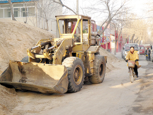 從紅星路進(jìn)入增光道,只見(jiàn)經(jīng)營(yíng)裝修材料的店面林立,道路兩旁的沙子水泥給人一種走進(jìn)建筑工地的感覺(jué)。原本9米寬的道路在這些頗有氣勢(shì)的“攔路虎”的侵占下,只剩下不到4米寬。眼見(jiàn)一輛轎車駛來(lái),記者立即避讓,崎嶇不平的路面馬上給記者來(lái)了一個(gè)下馬威,崴腳的滋味著實(shí)不好受。再看那輛轎車,行進(jìn)之中猶如醉漢走花步,那叫一個(gè)搖擺不定?磥(lái)司機(jī)是位初次走增光道的“新手”,搖下車窗看看路況,也只能說(shuō)句粗口了事。此時(shí)一陣風(fēng)吹來(lái),沒(méi)有任何遮蓋物的沙堆立刻風(fēng)起“沙”涌,行人紛紛掩面閉口。邁著蹣跚的步子走到增光道盡頭,記者儼然成了件“出土”文物。一名剛從增光里小區(qū)走出來(lái)的母親,左手抱著孩子,右手還不忘將小孩的帽子拉低,又向上拽了拽已經(jīng)遮住孩子半個(gè)臉的口罩,嘴里不忘囑咐:“寶貝兒,一會(huì)兒記得閉眼,要不又得迷眼了。”