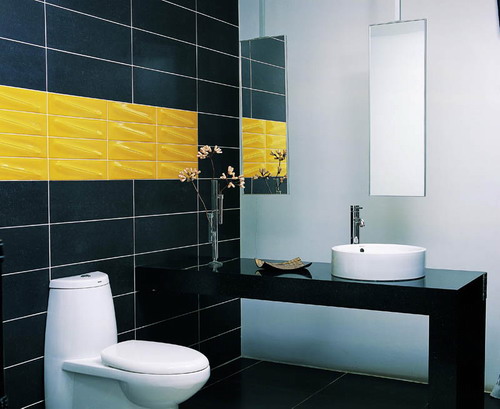 視覺的享受更多的來自于色彩和線條的和諧搭配,瓷磚是衛(wèi)浴空間中色彩和線條舞動的最大載體。在暗色瓷磚中橫向加入一條明黃色花磚,小空間的沉悶感立刻一掃而光;ùu表面凸起的斜紋,不僅打破衡平豎直的線性關(guān)系,還使得墻面充滿張力。色彩的對比與線條的對比,是使小衛(wèi)浴看起來時尚而有設(shè)計感的關(guān)鍵。