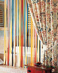 這樣的浴簾,指望它能夠擋住四下紛飛的水滴顯然是不現(xiàn)實的,因此如果在家里掛這樣一幅浴簾,你最好有享受泡泡浴的好心情。彩虹浴簾的作用更在于美化你的衛(wèi)生間,不論你有沒有躺在浴缸里發(fā)呆,它都會給你帶來非常好的視覺效果。當(dāng)然為了增加洗澡的私密性,需要在條狀的浴簾外再加一道密不透風(fēng)的簾子,不但有了實際功能,還能產(chǎn)生層次感。