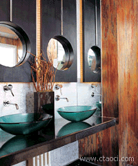 值得借鑒的地方:浴缸的一面墻改為裝飾墻,里面安放了一些插花,使衛(wèi)生間里保持自然的氣息,可以從衛(wèi)生間外面隨時(shí)更換插花,很有創(chuàng)意也非常方便。