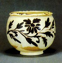 在磁州境內(nèi)(今磁縣觀臺鎮(zhèn)、彭城鎮(zhèn)一帶),故名。建于宋代,所燒器物純供民間使用,品種繁多,如瓶、罐、盆、碗、缸、甕等,以白地黑花(屬釉下彩裝飾)為主要特征。白地黑花保留了不少民間喜聞樂見的紋飾,如馬戲、孩童釣魚、池塘趕鴨、蹴球等,題材豐富而清新,紋飾線條流暢豪放,黑白色彩對比強烈,發(fā)展了陶瓷的裝飾藝術(shù),當時深受北方地區(qū)人們喜愛,曾對南北方不少瓷窯產(chǎn)生很大影響。