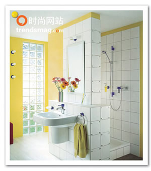小空間雖然不必追求奢華,但同樣需要在達到基本要求的同時,完成審美上的情趣。就算衛(wèi)浴間的面積不是很大,也可以設(shè)計得非常別致。巧妙地應用隔斷將盥洗區(qū)與淋浴區(qū)分開,充分展示了衛(wèi)生間的整潔有序,在空間運用上更顯得靈活而緊湊;木質(zhì)防水地板的應用體現(xiàn)了整個衛(wèi)生間的自然、大方;色彩仍然以純凈為主調(diào),大面積地運用白色和檸檬色,看上去干凈而富有朝氣。