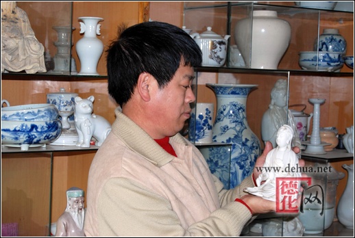 在新落成的德化縣陶瓷博物館陳列館內(nèi),每當游客參觀時,講解員總是不厭其煩地抖出這件“寶貝”的來歷。那么,許回成何許人也?何以能擁有這樣的瓷塑珍品?昨日,記者帶著疑問走進這位“獻寶人”,為讀者揭開其收藏的神秘面紗。