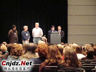周健兒校長同時還應(yīng)邀出席了在美國賓夕法尼亞州匹茲堡市舉辦的40屆美國陶教年會并與NCECA現(xiàn)任主席Robert Harrison及下任主席Skeffington Thomas及其執(zhí)行委員會高級成員進行了有關(guān)NCECA與景德鎮(zhèn)陶瓷學(xué)院在未來的合作交流的工作談判。雙方同意在舉辦第一屆NCECA中國陶瓷藝術(shù)教育研討會的基礎(chǔ)上積極尋求更多的合作。隨后周校長出席了NCECA貴賓晚宴并在NCECA全美直播的開幕式上做了貴賓發(fā)言,周校長說:“景德鎮(zhèn)陶瓷學(xué)院有優(yōu)厚的中國傳統(tǒng)陶瓷藝術(shù)沉淀和現(xiàn)代陶藝教學(xué)創(chuàng)作的良好氛圍,在我們即將與NCECA,WVU共同舉辦第一屆NCECA中國陶瓷藝術(shù)教育研討會的時候,我誠摯地邀請各位來景德鎮(zhèn),來我們學(xué)校來親自感受中國悠久的文化魅力,感受中國人民的純樸與熱情,感受東方陶藝源頭的魅力!”周校長的講話博得了來自全美和世界各地陶藝界和陶藝教育界的約5000名與會人士的長時間熱烈掌聲。