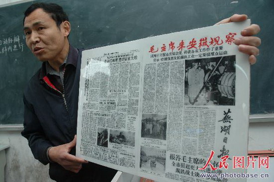 4月1日,一張反映毛澤東第一次到安徽蕪湖視察為主要內(nèi)容的陶瓷報紙在安徽省蕪湖市第二中學(xué)首次公開亮相,報紙選自1958年9月29日出版的《蕪湖日報》,制作規(guī)格42x60cm,按1:1.2比例放大,重約6千克。研發(fā)人為蕪湖市民集報迷程正發(fā),目前他正在創(chuàng)制一套5張迎奧運的陶瓷報紙!