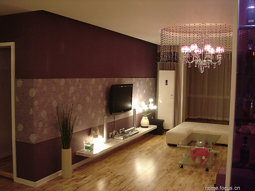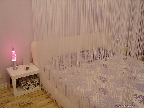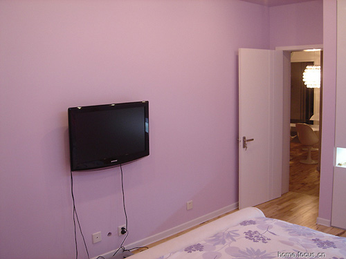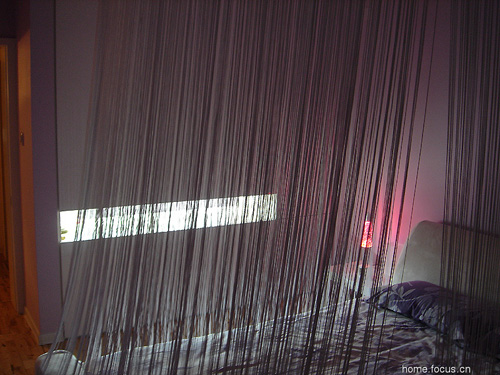 其實(shí)當(dāng)初設(shè)計(jì)的時(shí)候,為電視線預(yù)埋了跟線管,50MM粗的,可電視的插頭竟然那么大,無奈 絲絲線簾營造浪漫感覺