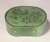說 明: 胎黃白較硬,釉深綠潤澤,底無釉.筆法流暢,尤其鵲腹的一筆勾勒得惟妙惟肖.從枕面釉的光澤被磨損的情況看,為實用器.