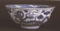 說 明: 畫面生動(dòng)活潑,繪畫線條流暢柔細(xì),造型秀美,質(zhì)地瑩潤.底青花雙圈內(nèi)楷書"大明弘治年制"款.