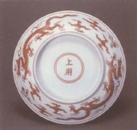 說(shuō) 明: 紅彩嬌艷,龍紋生動(dòng),胎薄體輕,并有極少見(jiàn)的"上用"款識(shí),是弘治官窯產(chǎn)品.