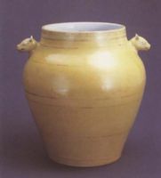 說 明: 此器黃釉均勻,如雞油一般光潤,堪稱弘治一朝的典型之物.此獸耳罐多為祭祀用品.