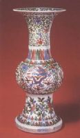 說 明: 通體白釉五彩,紋飾滿密,多達(dá)九層之多,姹紫嫣紅繪于一器,十分絢麗.
