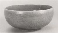 說 明: 胎體厚重,造型飽滿,里外施青釉,釉層厚,釉面潤,紋樣為釉下刻花,清晰秀麗.