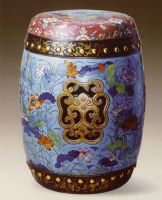 說 明: 繡墩又稱坐墩,盛行于明清兩代.此繡墩為乾隆時代表作品,制作精美,應用了多種彩飾工藝,使繡墩端莊古樸的造型透出幾分俏麗的情調(diào).色地上以斗彩進行裝飾本已艷麗,此器又增加了粉彩軋道工藝,越顯奢華.