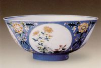 圖片名稱: 藍地粉彩開光花卉紋碗