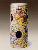 圖片名稱: 黃地粉彩云龍紋鏤空帽筒
