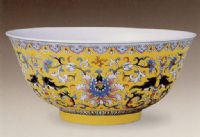 圖片名稱(chēng): 黃地粉彩纏枝蓮雙魚(yú)紋碗