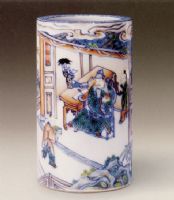 圖片名稱: 斗彩詩(shī)句人物圖筆筒