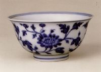 說(shuō) 明: 此碗胎體較薄,青花紋飾精細(xì),所繪花葉較飽滿,青花呈色濃艷,釉質(zhì)細(xì)潤(rùn),白中泛青,足底無(wú)款識(shí).