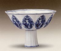 圖片名稱: 青花開光雙鳳紋葵花式高足碗