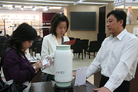 工作人員現(xiàn)場(chǎng)介紹景德鎮(zhèn)陶瓷