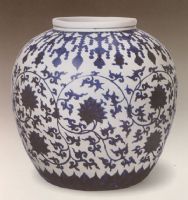 說 明: 此罐高大古樸,畫面布局結構合理,疏密有致,層次分明,是嘉靖青花大件器物的佳品.