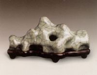 說 明: 此件仿哥釉玲瓏石形鎮(zhèn)紙.造型秀巧,釉質(zhì)肥潤,有宋代哥窯瓷之光澤.雖無年號款識,仍為明仿哥窯瓷中成功的制品.