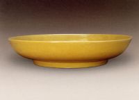 說 明: 胎質(zhì)細(xì)膩.釉色黃潤(rùn)光滑,釉面晶瑩透澈.圈足內(nèi)有青花"大明弘治年制"款.