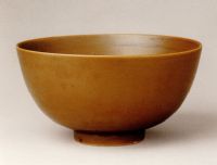 說(shuō) 明: 碗敞口,深弧壁,圈足.通體施醬色釉,釉面光亮勻凈.口沿因垂釉而顯露白色胎骨.足內(nèi)施白釉.