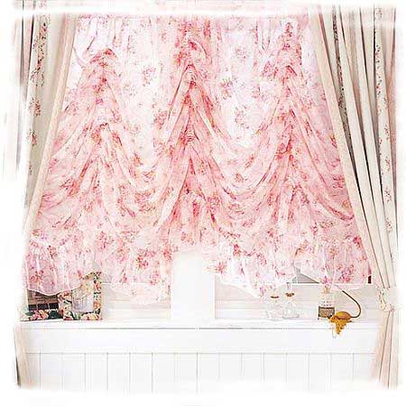 粉色花朵圖案的窗簾,內(nèi)簾折皺設(shè)計(jì)使窗簾更有情趣。