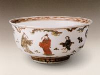 說 明: 此碗造型古樸敦厚,釉質(zhì)瑩潤(rùn),人物神采飄逸,為嘉靖民窯五彩器佳作.特別是內(nèi)壁有暗花裝飾,在嘉靖五彩瓷中殊為少見.
