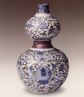 說 明: 此瓶呈葫蘆形.通體繪纏枝花紋.紋飾清麗.