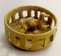 說(shuō) 明: 施青釉,略呈黃綠色,底部露胎,整器集雕塑、鏤空、印紋于一身,工藝精巧,造型形象生動(dòng).