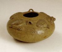 說 明: 胎土呈灰色,通體施青綠色釉,底部無釉.造型精巧,栩栩如生.