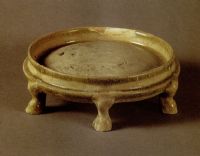 說 明: 灰白胎,胚體結(jié)實.硯青釉,晶瑩剔透,玻璃質(zhì)感強,開細(xì)小片紋.蹄足是東晉瓷硯的典型特征之一.