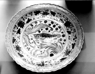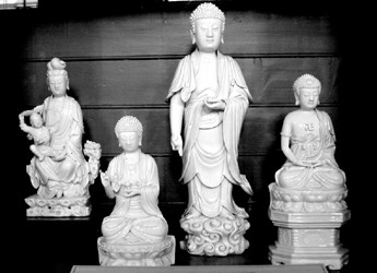 展品中數(shù)量最多的要算龍泉青瓷和德化白瓷,有趣的是只要看看其他展館中的歐洲同期生產(chǎn)的青花陶釉器的粗俗,就會感到這兩種器物是多么出神入化了。碧綠如湖水的龍泉青瓷和潔白似冰雪的德化白瓷是我國最早進入西歐的瓷器之一,故有特殊的地位。連在馬克思寫《資本論》的大英博物館閱覽室的書架上,也有不少德化白瓷佛像陳列,這讓我吃驚不小。