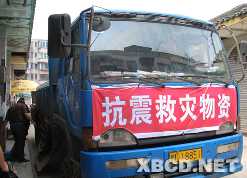 5月16日,四川科達(dá)陶瓷有限公司捐贈的2萬元救災(zāi)物資從夾江出發(fā),運往地震中受災(zāi)的綿陽市安縣。這批物資包括礦泉水、手套、口罩、帳篷等災(zāi)區(qū)急需用品。(完)(趙剛 楊曦)