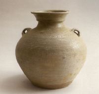 說 明: 施豆色青釉,釉層較薄,此壺制作規(guī)整,色胎灰白,燒結(jié)緊密。