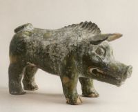 說 明: 該綠釉陶豬模制而成,通體施綠釉,胎體泥質(zhì)細(xì)陶.