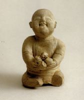 說 明: 胎質(zhì)灰白,堅(jiān)硬,素?zé)裏o釉。該俑捏塑成型。