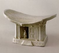 說 明: 通體以灰白瓷胎制成,滿施白釉,整體為一古代殿宇建筑。