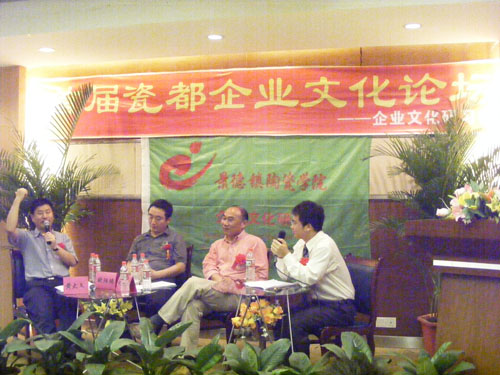 國家的繁榮在于經(jīng)濟,經(jīng)濟的發(fā)展在于企業(yè),企業(yè)的長存在于管理,管理的火力在于企業(yè)文化。為了讓在校大學(xué)生更好地了解企業(yè)文化和探討企業(yè)文化建設(shè),5月29日晚,景德鎮(zhèn)陶瓷學(xué)院舉辦了一場以“大力發(fā)揚瓷都優(yōu)良傳統(tǒng),努力建設(shè)本土企業(yè)文化”為主題的企業(yè)文化論壇。此次論壇邀請了華意壓縮機股份有限公司常務(wù)副總經(jīng)理黃大文、海暢法藍瓷有限公司副總經(jīng)理劉崇禮、鵬飛建陶有限公司的總經(jīng)理歐陽琦三位嘉賓,機電學(xué)院黨總支副書記馮景華、工商學(xué)院黨總支副書記胡世明、企業(yè)文化研習(xí)社指導(dǎo)老師計鎮(zhèn)華、校學(xué)生會主席劉現(xiàn)鵬及其他兄弟社團負(fù)責(zé)人200多人出席了論壇。